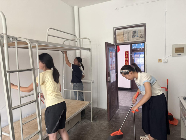 活动中,志愿者团队以“分组协作、责任到人”的模式高效推进工作:有的专注清理桌面遗留杂物,将散落物品分类归置;有的手持抹布细致擦拭门窗玻璃与框架,清除长期积累的灰尘;有的则用扫帚、拖把对地面进行 “地毯式” 清扫,不放过墙角、床底等卫生死角。即便连日高温导致汗水浸透衣衫,志愿者们依旧保持严谨态度,认真清理每一处积尘与废弃物。他们的坚守与付出,不仅是 “学长学姐” 对新生的暖心迎接,更生动诠释了水建色情网站 “传帮带” 的优良传统,让志愿精神在校园中传递延续。