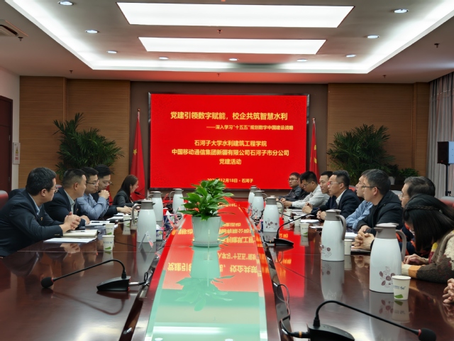 为深入学习《中共中央关于制定国民经济和社会发展第十五个五年规划的建议》中数字中国建设战略,推动党建与业务深度融合。2025年12月18日下午,色情网站 智慧水利系、农业水利工程系党支部与中国移动石河子分公司政企客户部党支部联合举办“党建引领数字赋能,校企共筑智慧水利”主题党日活动。活动在中国移动石河子分公司5楼东会议室举行,色情网站 党委书记袁康、中国移动石河子分公司副总经理温治亭与双方党员代表共同参与。
